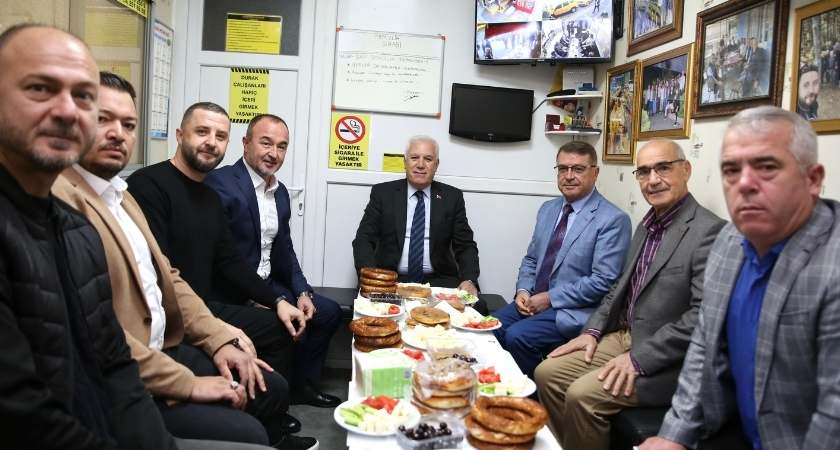 Bursa Büyükşehir Belediye Başkanı Mustafa Bozbey, Uluyol’daki Ulucami Meydan Taksi durağını ziyaret ederek taksici esnafıyla sabah kahvaltısında bir araya geldi. Bursa Esnaf ve Sanatkar Odaları Birliği (BESOB) Başkanı Fahrettin Bilgit, BESOB Başkan Vekili Bahattin Korkmaz ve Bursa Şoförler Odası Başkanı Ahmet Çakır’ın hazır bulunduğu ziyarette, Başkan Bozbey samimi bir ortamda esnafın talep ve önerilerini dinledi. Taksici esnafının sorunlarını yakından bildiklerini söyleyen Başkan Mustafa Bozbey, ekonomideki olumsuz gidişatın da taksici esnafını zor durumda bıraktığını belirtti. Tüm sorunları hep birlikte aşmak için çaba harcadıklarını anlatan Başkan Bozbey, “Taksicilerin kent içinde düzenlenmesini istedikleri talepler vardı. Onları da değerlendirmeye aldık. Taksicimizin yüzünün gülmesi için ne gerekiyorsa yapıyoruz, yapmaya devam edeceğiz” dedi.