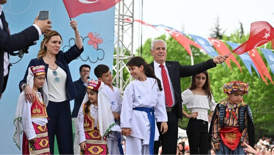 BURSA – Bursa Büyükşehir Belediyesi tarafından düzenlenen Çocuk Şenliği’nde çocuklar, birbirinden renkli etkinliklerle Ulusal Egemenlik ve Çocuk Bayramı’nın tadını çıkarttı. Bursa Büyükşehir Belediye Başkanı Mustafa Bozbey, “Gülümseyen yüzleriyle bugün burada bir araya gelen sevgili çocuklar, bugün sizin bayramınız. Yaşasın Cumhuriyet, yaşasın 23 Nisan, Yaşasın çocuklarımız” dedi.