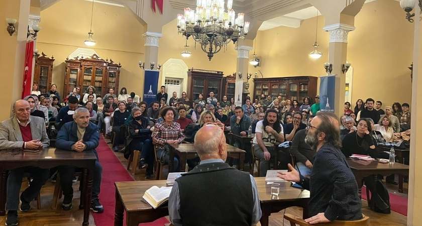 Edebiyatseverlerin büyük ilgi gösterdiği etkinliği, pek çok katılımcı yoğunluk nedeniyle ayakta izlemek zorunda kaldı.