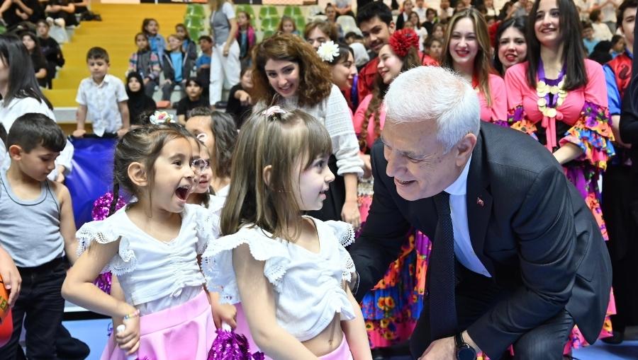 Konuşmaların ardından 22. Nilüfer Uluslararası Spor Şenlikleri açılış töreni minik sporcuların branş ve dans gösterileriyle devam etti.