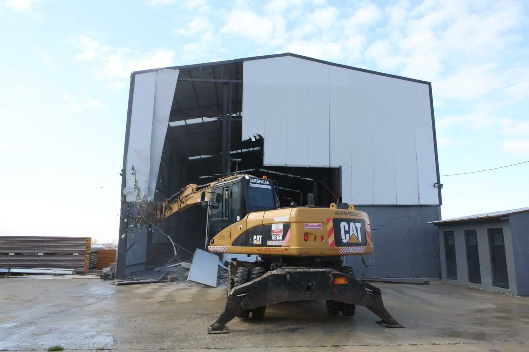 Nilüfer Belediyesi, kentte izinsiz inşa edilen yapılarla mücadelesine devam ediyor. Belediye ekipleri, Çalı ve Akçalar Mahalleleri’nde toplam bin 570 metrekarelik alana sahip üç iş yerinin yıkımını gerçekleştirdi.
