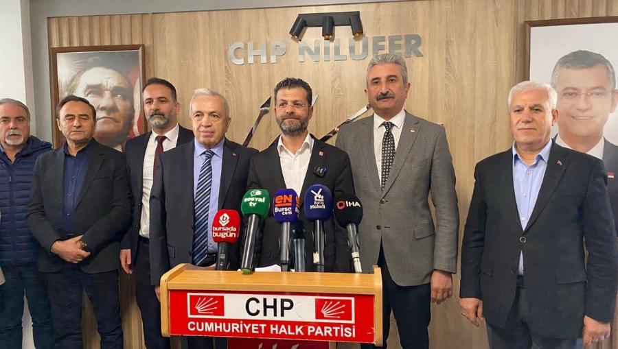 CHP Nilüfer İlçe Başkanı Özgür Şahin, seçim sürecinde yaşanan kanunsuzluklara ilişkin basın toplantısı düzenledi. Toplantıya CHP İl Başkanı Nihat Yeşiltaş, CHP Bursa Büyükşehir Belediye Başkan Adayı Mustafa Bozbey ve CHP Nilüfer Belediye Başkan Adayı Şadi Özdemir de katıldı.